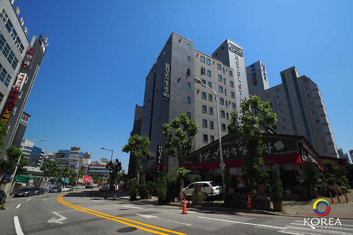 Hotel Stay 53 ตั้งอยู่ใกล้ สถานี Sangmu ทางออก 5 เดินเพียง 5 นาที ก็ถึงแล้ว เป็นโรงแรมใหม่เพิ่งเปิดได้ไม่นาน (2019) ในย่านนี้มีโรงแรม เยอะมาก แล้วราคาก็ไม่แพงด้วยซิครับ