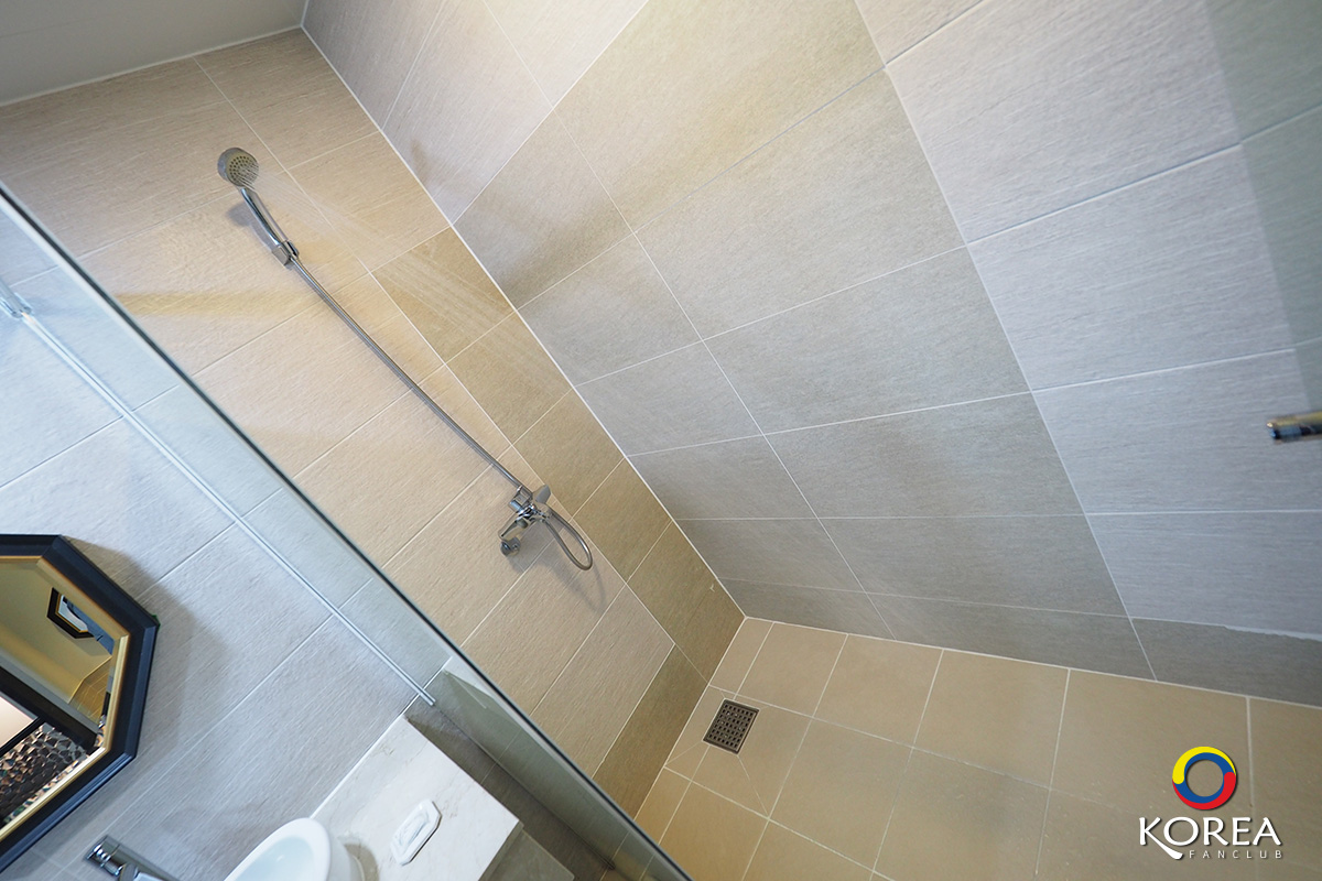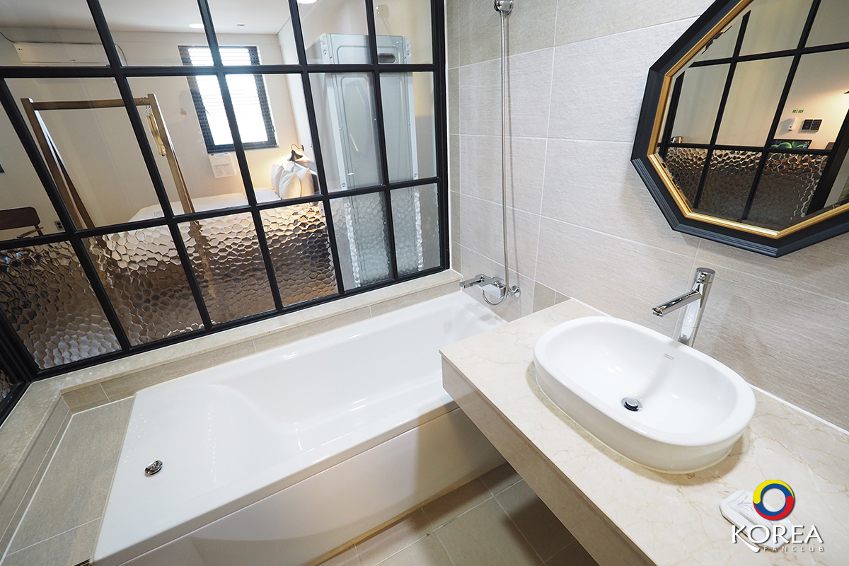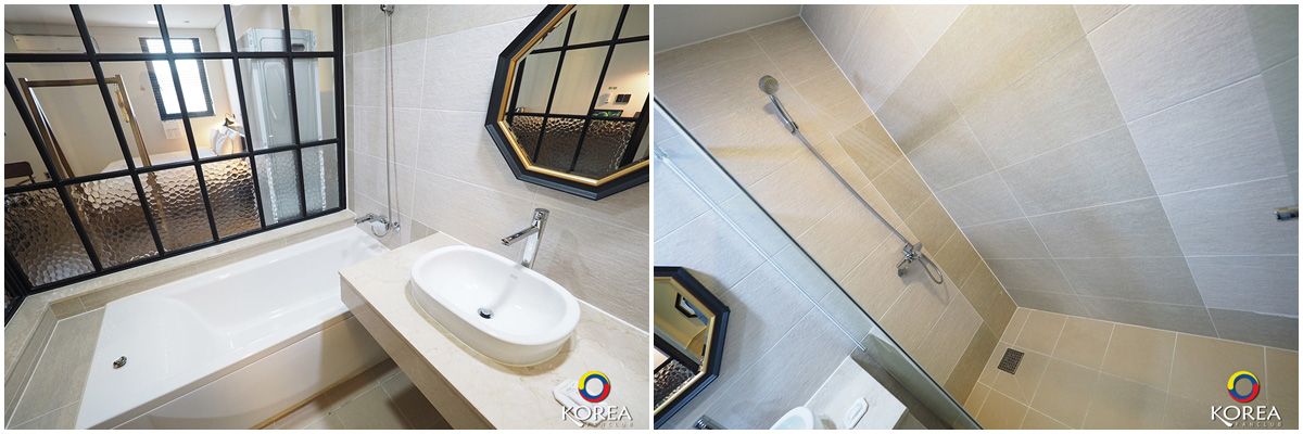 ห้องน้ำแยกส่วน มีทั้งอ่างอาบน้ำ อ่างล้างหน้า และ shower โดยรวมห้องอาบน้ำใหญ่มาก