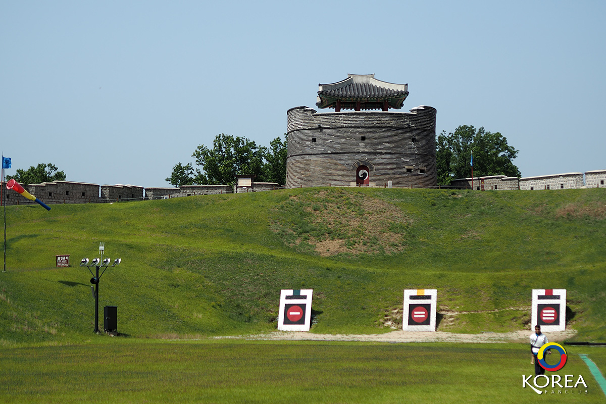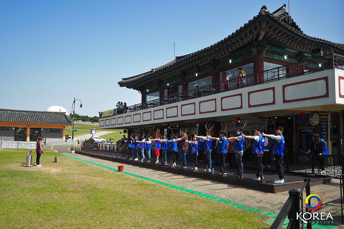 ลานกิจกรรม Gukgung Experience (Korean Traditional Archery) สนามฝึกยิงธนู ในราคาเพียง 2,000 วอน (10 ลูกธนู) อยู่ในบริเวณ Changnyongmun Gate