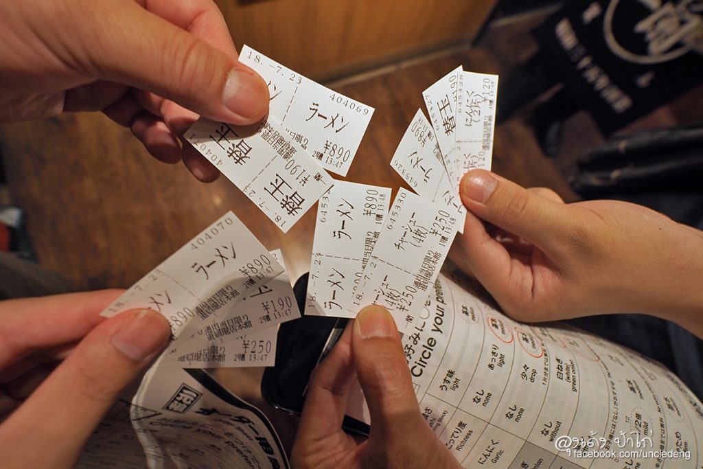 ถ้าวันที่เราไป คิวยาว พนักงานจะนำ เอกสารการสั่ง ประเภทของราเมน ตามสไตล์ความชอบของแต่ละคน กระดาษใบนี้ เราเรียกกันว่า "กระดาษข้อสอบ" ครับ