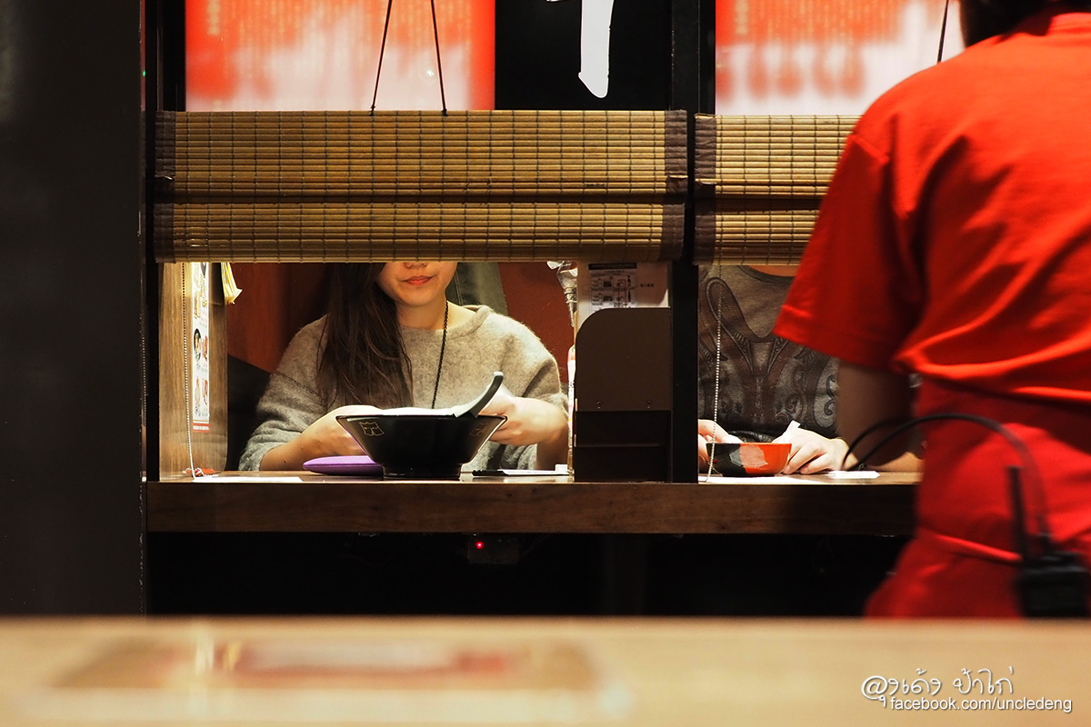 นั่งทานแบบนี้ก็ดีของใครของมัน ไม่เกี่ยวกัน ไม่ต้องพูด ไม่ต้องคุย โซ้ยให้อร่อยอย่างมีสติ และสมาธิจะได้ลิ้มรสชาติของราเมง แบบเต็มๆ