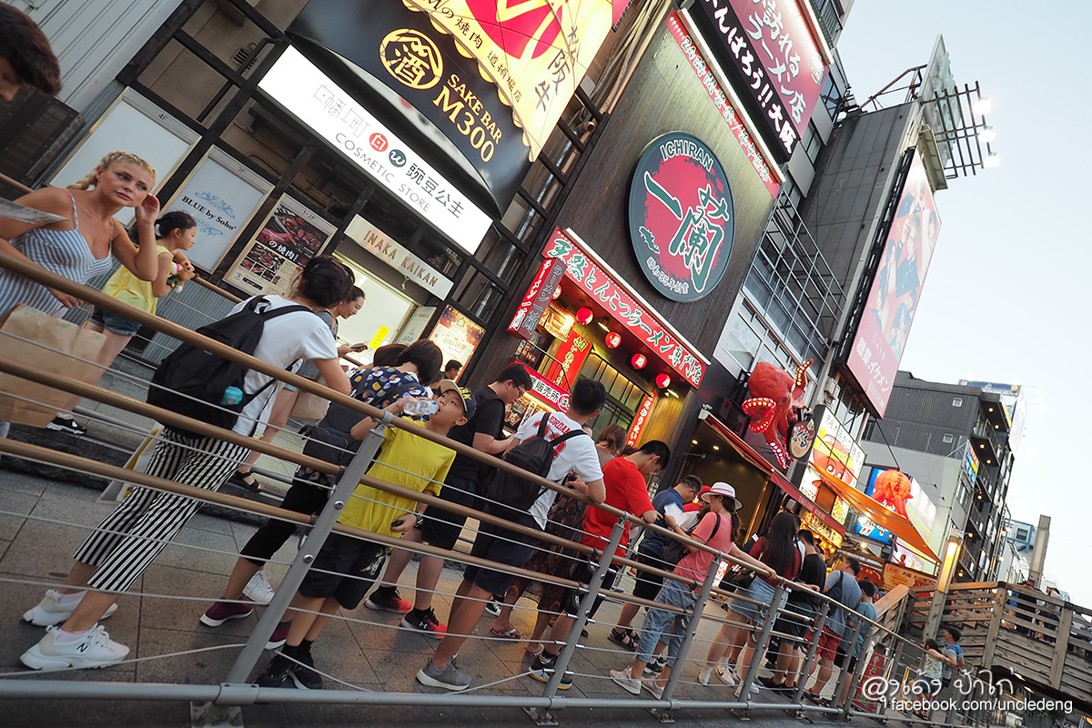 เที่ยวโอซาก้า ลุงเด้งป้าไก่ ชอบมากินที่ Ichiran Ramen " ราเมงข้อสอบ " ที่ สาขา Dotonbori เป็นหนึ่งใน ร้านอาหารโอซาก้า ที่ลูกค้าเยอะมากตลอดทั้งวัน เพราะใกล้สถานที่ท่องเที่ยว และเป็นแหล่งรวมของอร่อยตลอดทั้งสองฝั่งถนน