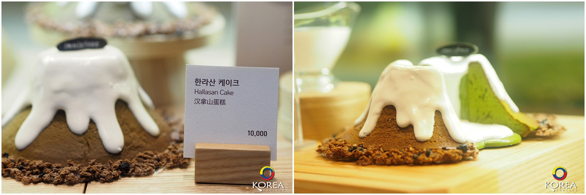 เค้กที่ขายดีที่สุดของร้านนี้คือ Hallasan Cake ภูเขาไฟที่เป็นสัญลักษณ์ของเกาะนี้ ตั้งอยู่ใจกลางเมือง