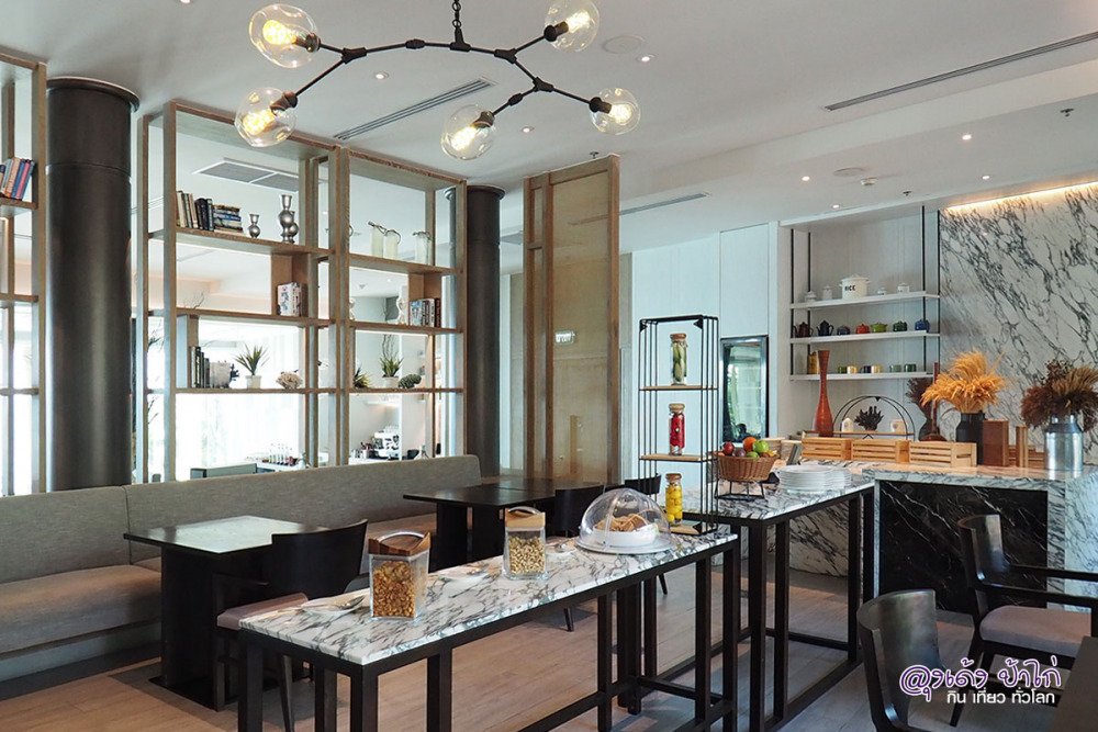 อาหารเช้า บริการที่ห้องอาหาร Elements Restaurant มีความหลากหลายมาก รวมถึงอาหารเช้าแบบไทย ที่เน้นอาหารหนักเช่นแกงเขียวหวาน ข้าวผัด ปลาหมึกผัดพริก อาหารเช้าแบบอเมริกัน เมนูไข่ต่างๆ เนื้อ Cold Cut สลัด ผักสด ขนมปัง แพนเค้ก วาฟเฟิล น้ำผลไม้สด นมสด น้ำเต้าหู้ ชา กาแฟ และอีกมากมายเกือบ 100 รายการ อาหารเช้าเปิดบริการ 6:00 AM-10:30 AM (จันทร์ - ศุกร์) อาหารเช้าเปิดบริการ 6:00 AM-11:00 AM (เสาร์-อาทิตย์ และวันหยุด)