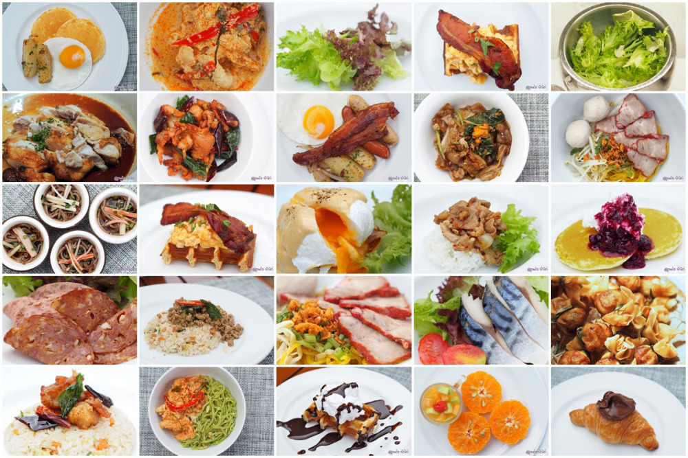 ภาพอาหารด้านบน เป็นการรวมภาพอาหารเช้า 2 วัน และเป็นแค่บางส่วนเท่านั้น - อย่างขนมอบ เช่นขนมปัง ครัวซอง ก็มีให้เลือกเกิน 10 ชนิด ผักสด ผลไม้ บอกเลยอย่างเยอะ