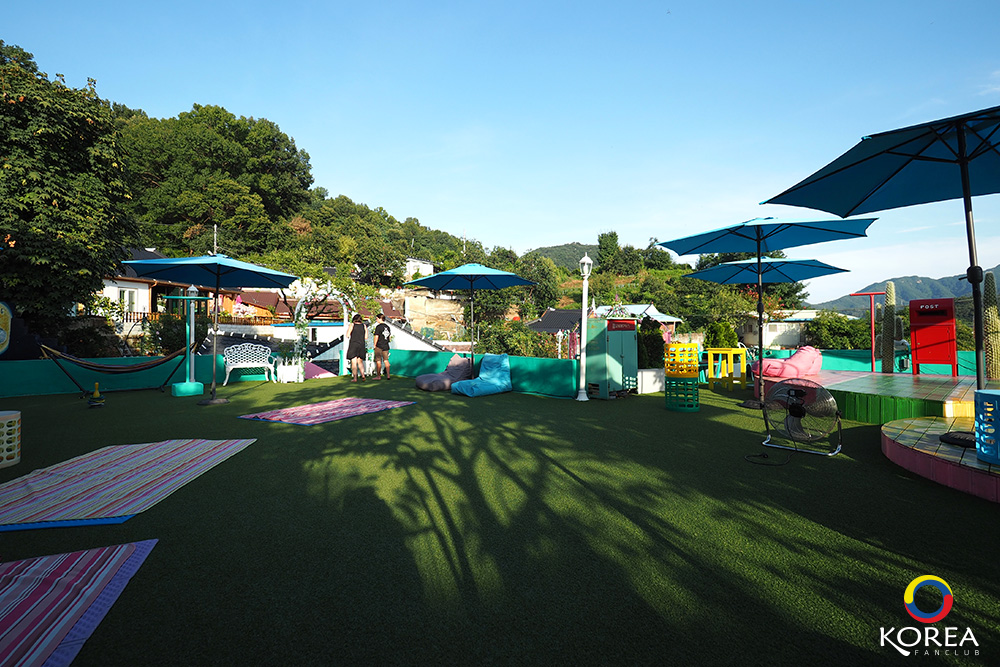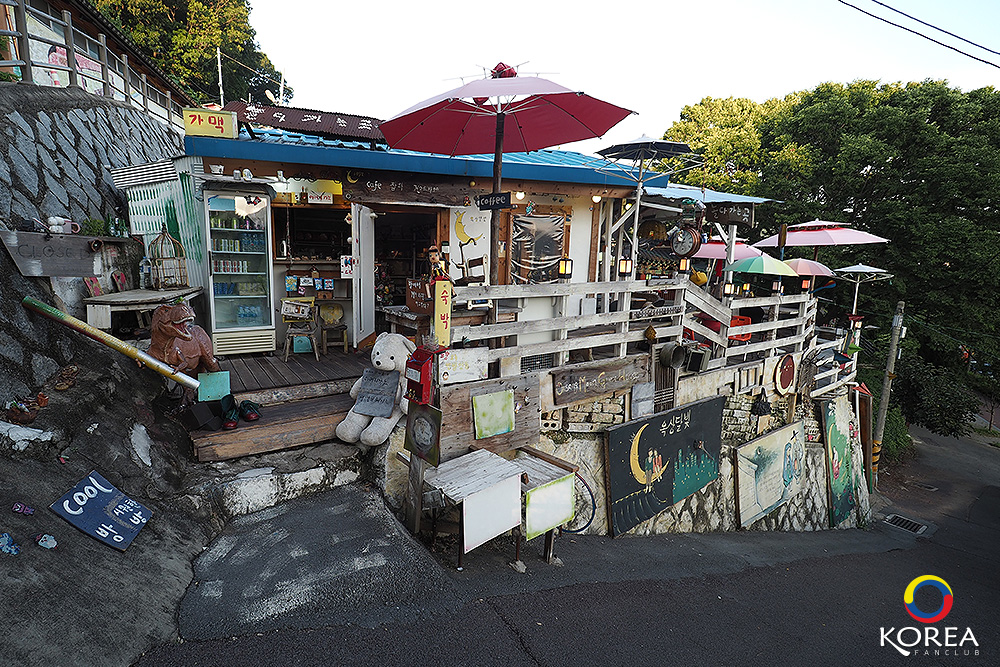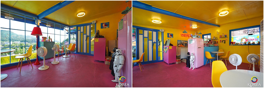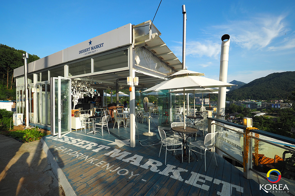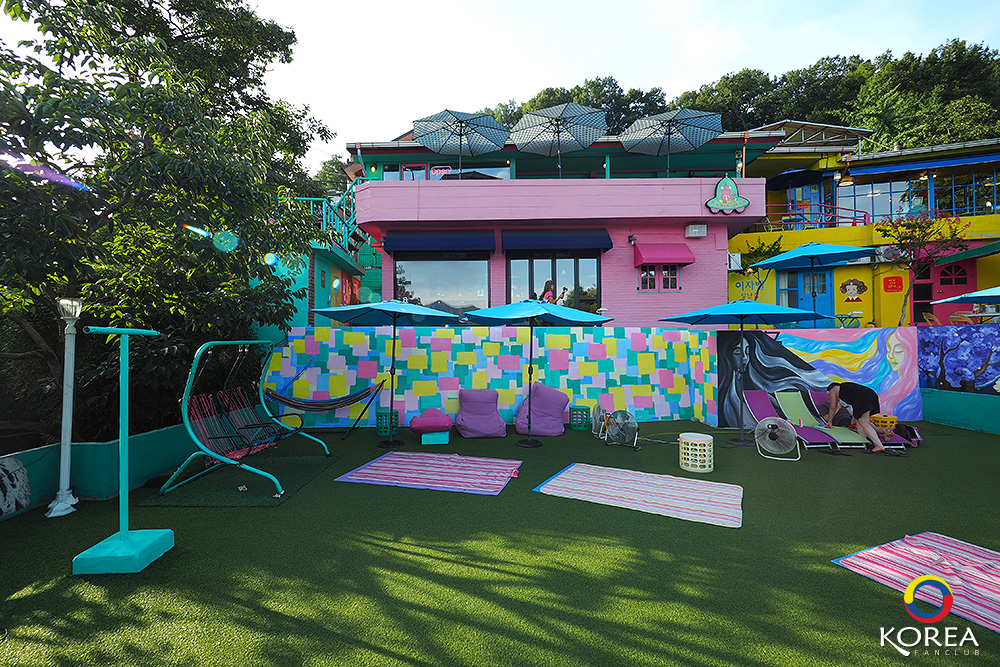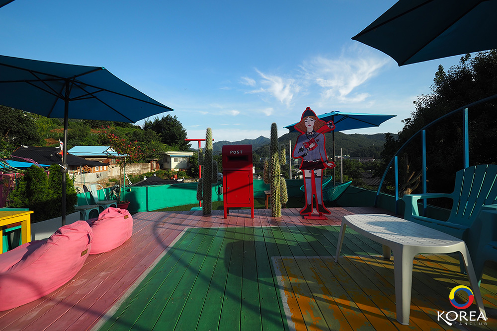 เดินมาจนเกือบจะสุดท้าย ก็เจอกับร้านนี้ Desert Market ร้านกาแฟ เก๋ๆ มีจุดชมวิวสวยๆ ของ Jaman Mural Village หมู่บ้านหลากสีแห่งเมืองจอนจู