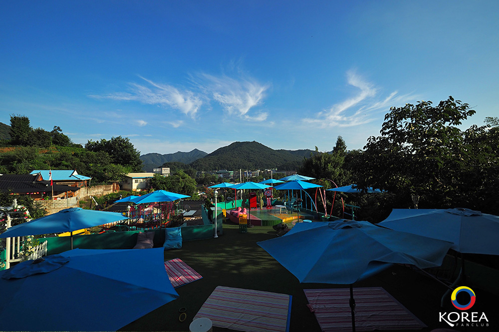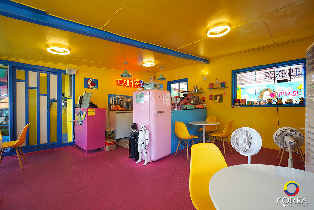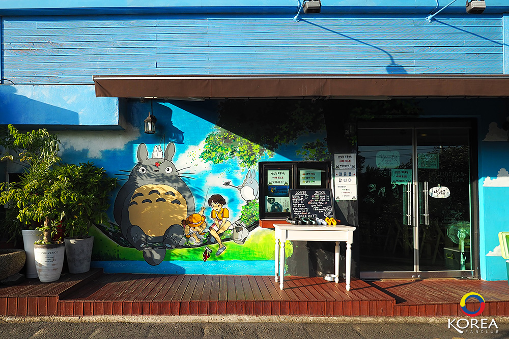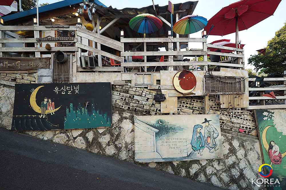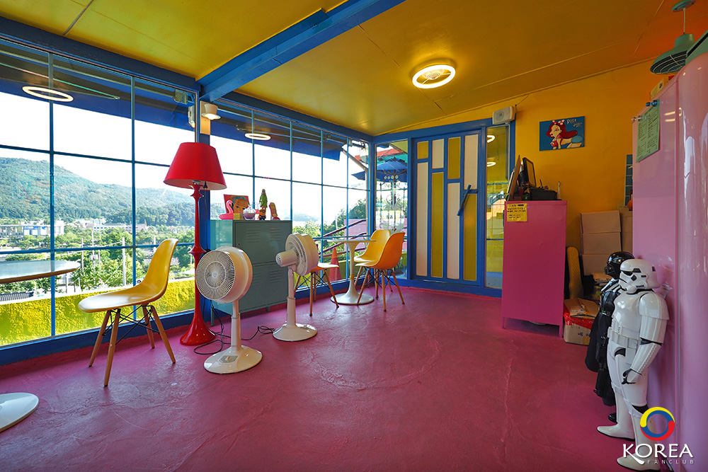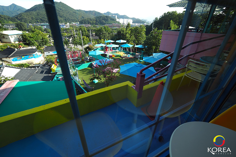 เดินมาจนเกือบจะสุดท้าย ก็เจอกับร้านนี้ Desert Market ร้านกาแฟ เก๋ๆ มีจุดชมวิวสวยๆ ของ Jaman Mural Village หมู่บ้านหลากสีแห่งเมืองจอนจู