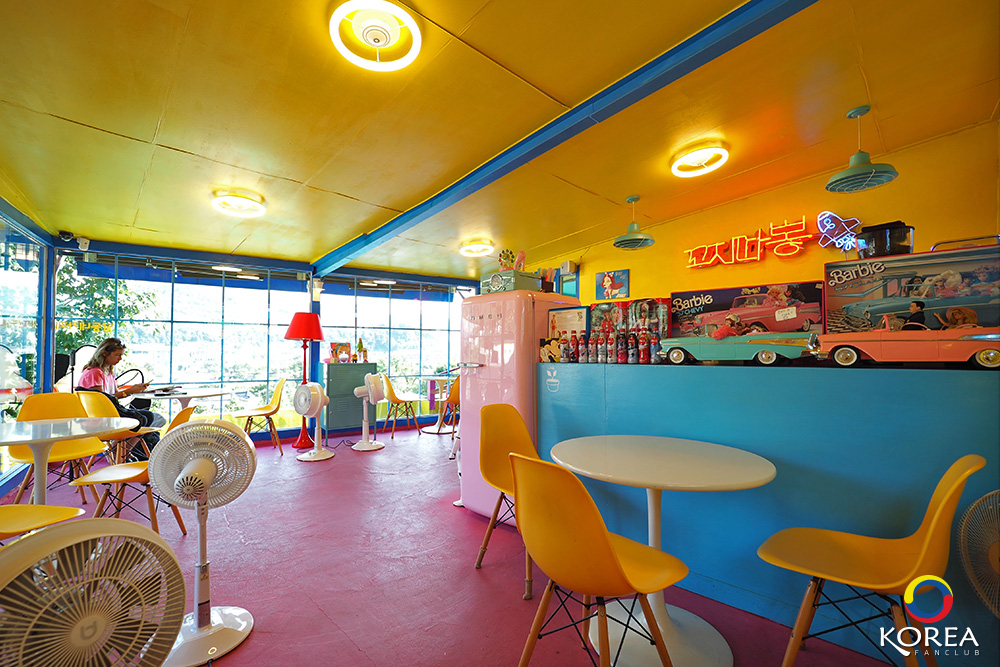กำแพงสีสดๆ สีแดง และ สีเหลือง จะเป็นร้าน Coffee Shop ทั้ง 2 ร้านนี้เจ้าของเดียวกัน ร้านสีแดงจะแต่งร้านแบบเท่ห์ๆ แนวผู้ชายเก๋ๆ ส่วนร้านที่กำแพงสีเหลืองจะเป็นร้านแนวสาวๆ สีสดๆ เหมือนตุ๊กตาบาร์บี้