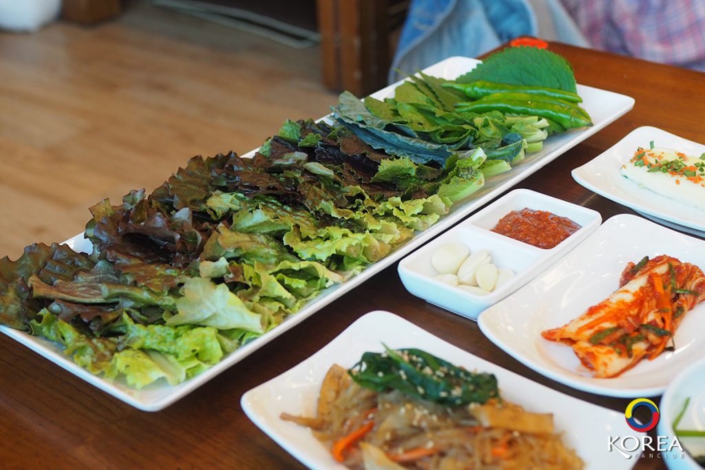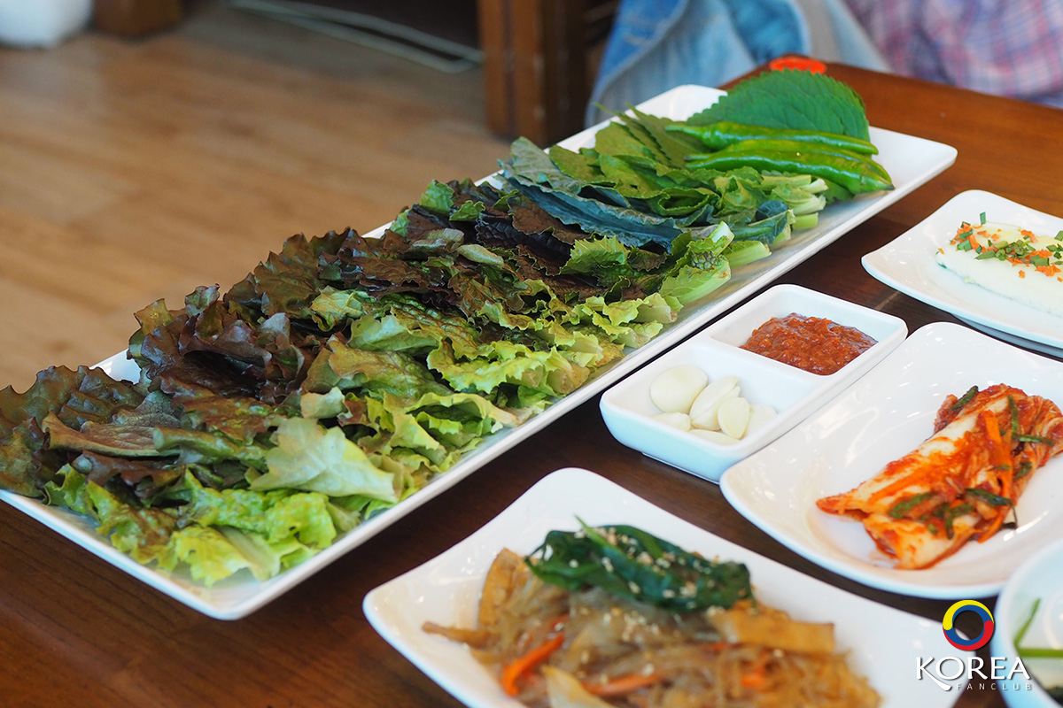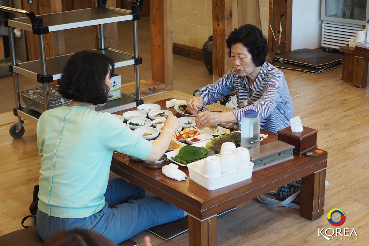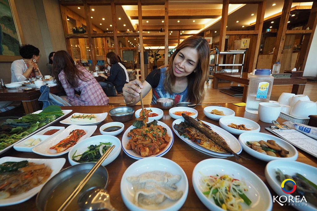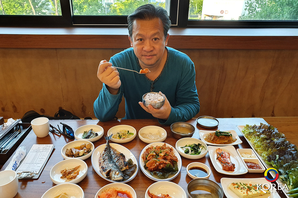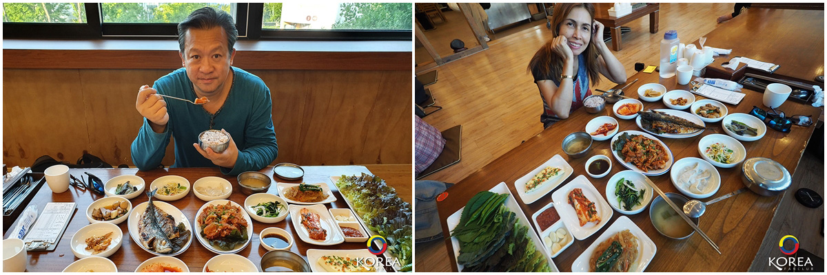 ลุงเด้งป้าไก่ มากัน 2 คน ก็สั่ง อาหารหลัก คนละ 1 จาน ลุงเด้ง สั่ง ปลาแมคคอเรล (ปลาโอ) ย่างเตาถ่าน ป้าไก่ สั่ง หมูผัดพริกเกาหลี นอกนั้นที่เห็นวางเต็มโต๊ะ คือ เครื่องเคียง ประมาณ 15 ชนิด (เรียกว่าวางกันเต็มโต๊ะเลยล่ะครับ)