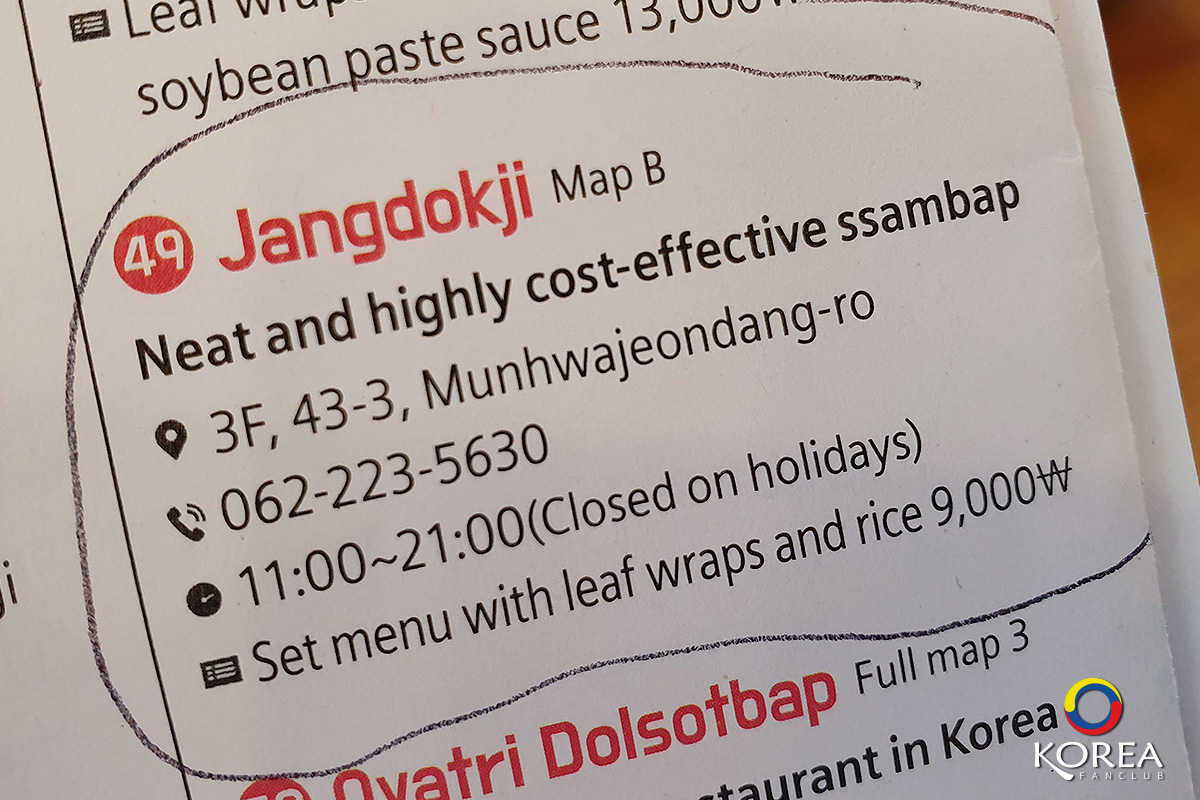ชื่อ และ ที่ตั้งร้าน ถ้ามาไม่ถูก หาไม่เจอ ให้มาที่ สถานี Culture Complex ทางออก 3 เดินข้ามถนน Munhwajeondang-ro แล้วเอาภาพนี้ ถามคนแถวนั้นได้เลยครับ ร้านอาหาร ควังจู ร้านนี้จัดว่าอร่อยและคุ้มมาก