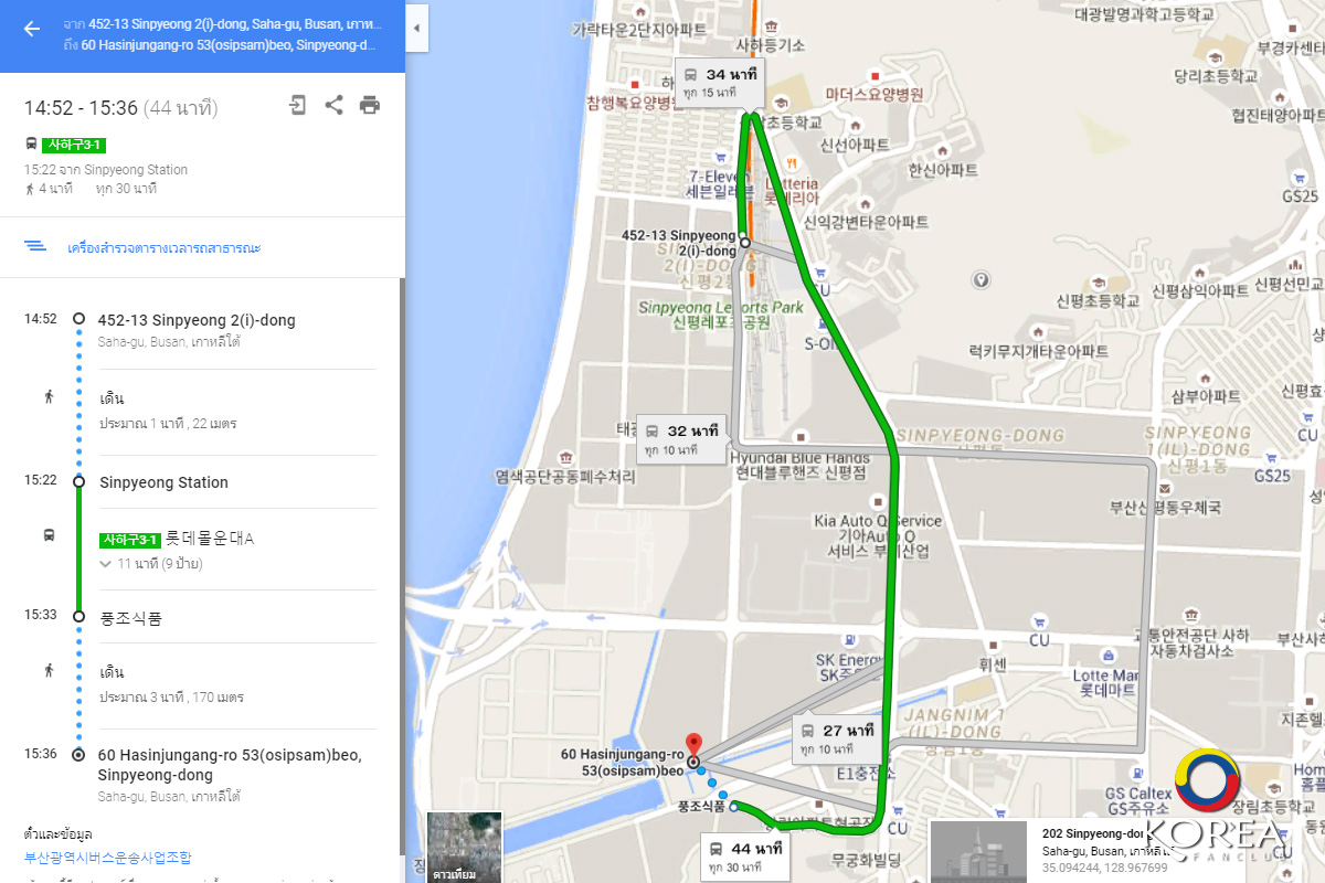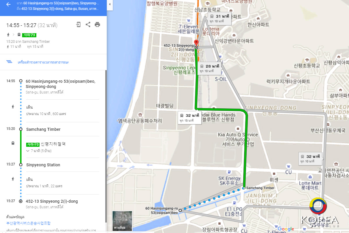 การเดินทาง : ขึ้นรถเมล์สาย สาย 3-1 ที่ สถานี Sinpyeong Station ทางออก 3 - รถจะวิ่งตามแผนที่ด้านบน