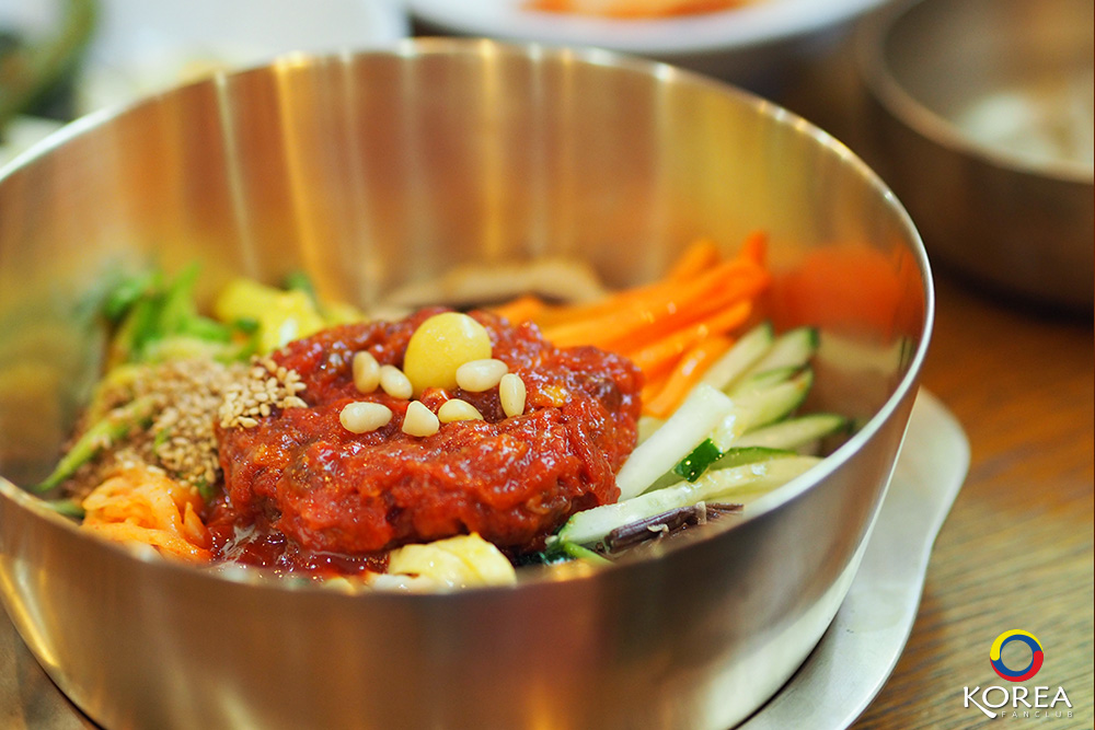 - Brassware Yukhoe Bibimbap : บิบิมบับ เนื้อดิบ เสิร์ฟในชามทองเหลืองร้อน ที่อุณหภูมิ 65 °C