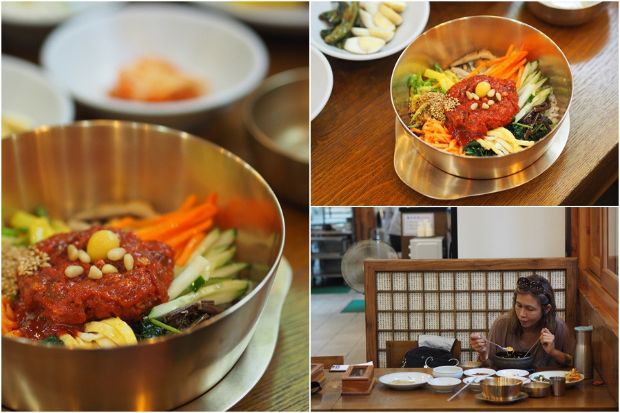 ในหมู่บ้านโบราณ (Bukchon Hanok Village) มีร้านขายบิบิมบับเจ้าดังอยู่หลายร้าน หนึ่งในร้านยอดนิยมในย่านนี้คือ HanKookKwan เปิดมาตั้งแต่ปี ค.ศ. 1971 เป็นหนึ่งในร้านขายดี เพราะตั้งอยู่เยื้องๆ กับสถานที่ท่องเที่ยวสำคัญของเมืองนี้คือ ศาลเจ้า “คยองกีจอน” (Gyeonggijeon)