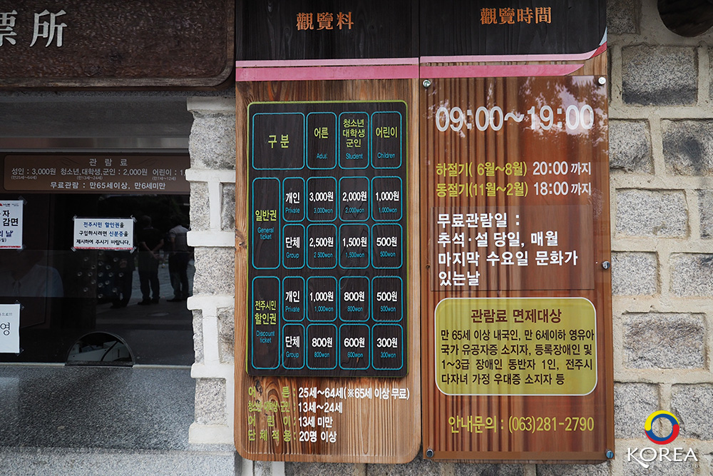 ค่าเข้าชม : ผู้ใหญ่ ราคา 3,000 วอน (25-64 ปี)/ เด็ก 2,000 วอน (13-24ปี) / เด็กเล็ก 1,000 วอน (อายุต่ำกว่า 13 ปี)