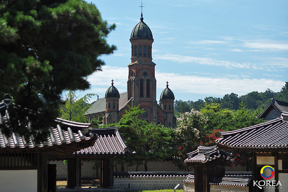 เมื่อเราเดินเล่นในศาลเจ้า Gyeonggijeon ก็สามารถมองเห็น โบสถ์คริสต์ Jeondong (전주 전동성당) โบสถ์แห่งแรก และว่ากันว่าสวยที่สุดในเกาหลี