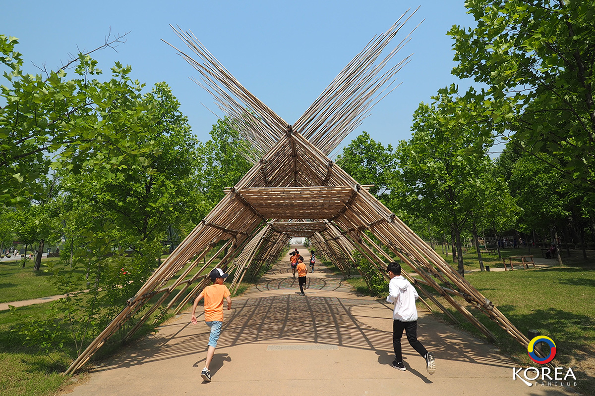 บริเวณสวนสาธารณะแห่งนี้ ก็มีงานศิลปะที่ทำจากไม้ไผ่อยู่หลายชิ้นงาน