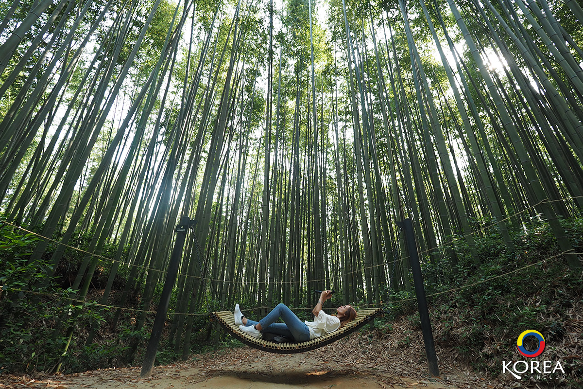 นี่คือสวนไผ่ ที่ใหญ่มากแห่งหนึ่งของเกาหลีเลยล่ะครับ วิธีการถ่ายภาพต้องใช้กล้องที่มีเลนส์มุมกว้าง จะเก็บภาพต้นไผ่ได้หมด เพราะสูงเหลือเกิน