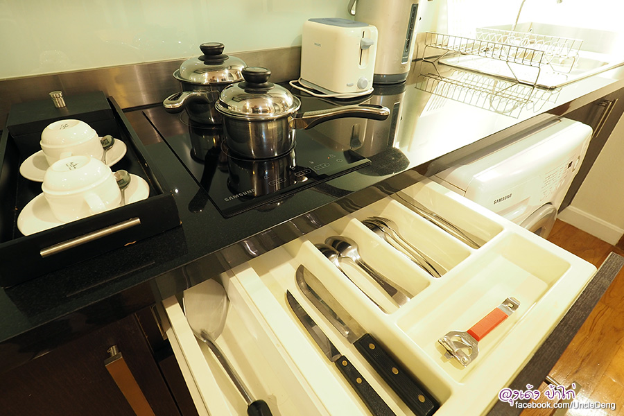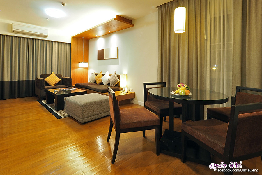ทริปนี้ลุงเด้ง ป้าไก่พัก 1 Bedroom Suite ราคาเริ่มต้น 2,900 บาท ภายในพื้นที่ประมาณ 60 ตร.ม. เป็นห้องชุด ประกอบด้วยโซนที่ 1 เป็น ห้องนั่งเล่น โต๊ะอาหาร ห้องครัว ตู้เย็นขนาดใหญ่ โซนที่ 2 จะเป็นห้องนอนเตียงใหญ่ มีห้องน้ำในตัว (ห้องน้ำสามารถเปิดเชื่อมถึงโซนที่ 1 ได้)