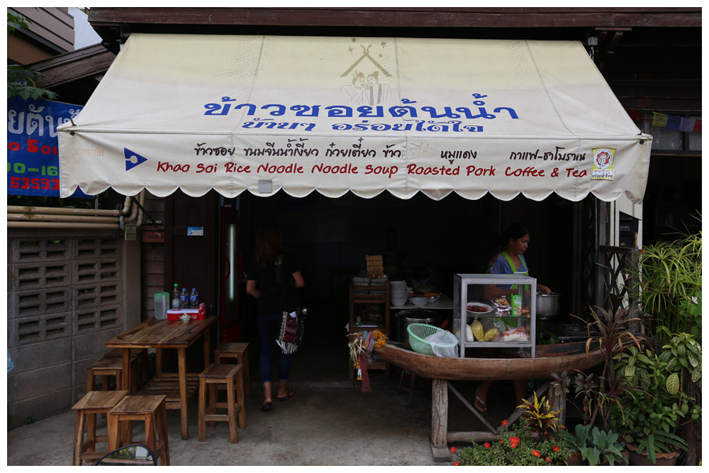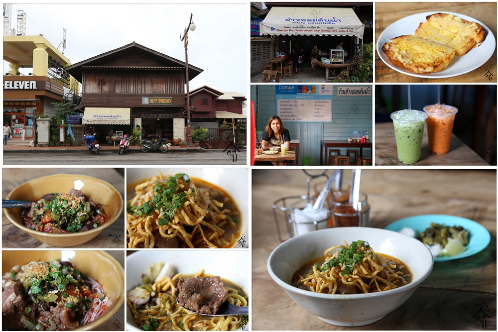 ข้าวซอยต้นน้ำเติบโตอยู่คู่เมืองน่าน มากว่า 30 ปี ตั้งอยู่ใกล้กับวัดมิ่งเมือง (ศาลหลักเมืองน่าน) เปิดอยู่ในบ้านไม้โบราณเล็กๆ 2 ชั้น ภายในมี 6 โต๊ะ รับลูกค้าได้พร้อมกันไม่เกิน 25 คน ตกแต่งร้านแบบบ้านๆ แต่ให้ความรู้สึกดี อบอุ่นเป็นกันเอง ตามประสาชาวบ้านในต่างจังหวัด และนี่คือตัวอย่างของเสน่ห์เมืองน่าน ที่เดินทางจะได้สัมผัสตลอดการเดินทางในเมืองน่าน