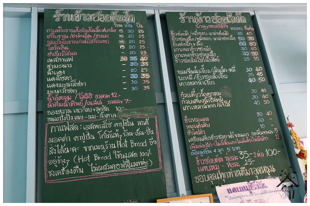 ชื่อร้านก็บอกแล้วว่าอาหารจานเด็ดคือ ข้าวซอย มีทั้งไก่ (35 บาท) และ เนื้อ (50 บาท) หรือใครจะกินแบบไก่+เนื้อ (60 บาท) ก็จัดให้ได้ เสิร์ฟมากับเครื่องเคียง ผักกาดดอง หอมแดง และมะนาว สูตรของทางร้านน้ำแกงจะใส ใส่กระทิไม่มาก รสชาติกลางๆ กลมกล่อม