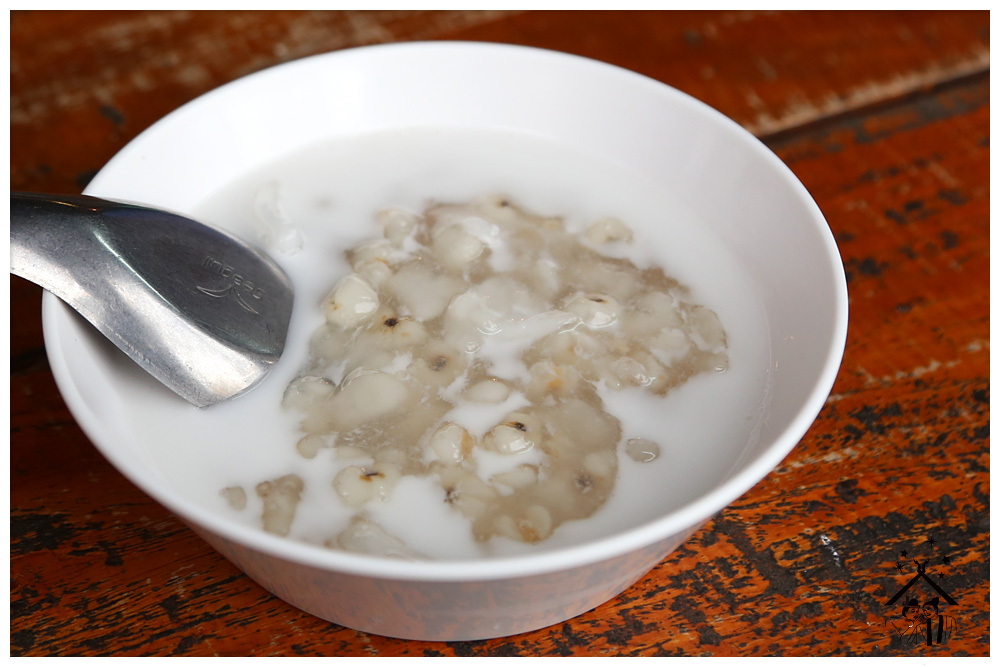 บัวลอยมะพร้าวอ่อนไข่หวาน เด่นที่ความหอมของน้ำกระทะ และตัวแป้งที่นุ่มกำลังดี หวานน้อย รสนุ่มส่วนของหวานอื่นๆ อยู่ในระดับมาตรฐาน แต่ที่น่าสนใจก็คือ เราสามารถรวมเมนูร้อน และ เย็น ไว้กินด้วยกันได้ เช่น ไอศกรีมกระทิ + ข้าวเหนียวดำเปียกมะพร้าวอ่อน / ไอศกรีมกระทิ + บัวลอย / ไอศครีมกระทิ + สลิม + ทับทิมกรอบ / ไอศกรีมกระทิขนมปังกรอบ เมนูแปลกๆ ที่เราอยากกิน ทางร้านจัดให้ได้จะมากน้อยก็ตามราคา ร้านนี้น้ำดื่มบริการตัวเอง และการสั่งของหวานก็สั่งหน้าร้านบริการตัวเองเช่นกันนะครับ