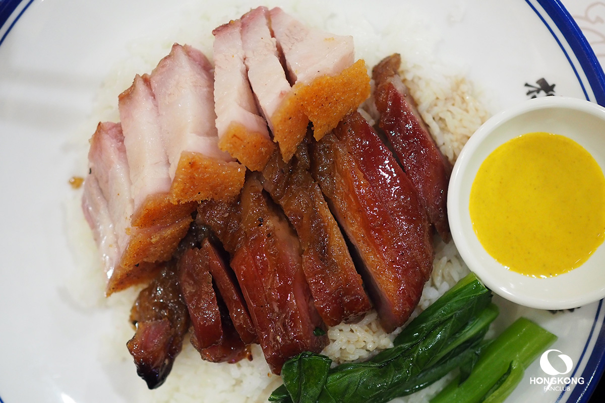 ข้าวหมูกรอบ + หมูแดง HK$ 65 เหรียญ