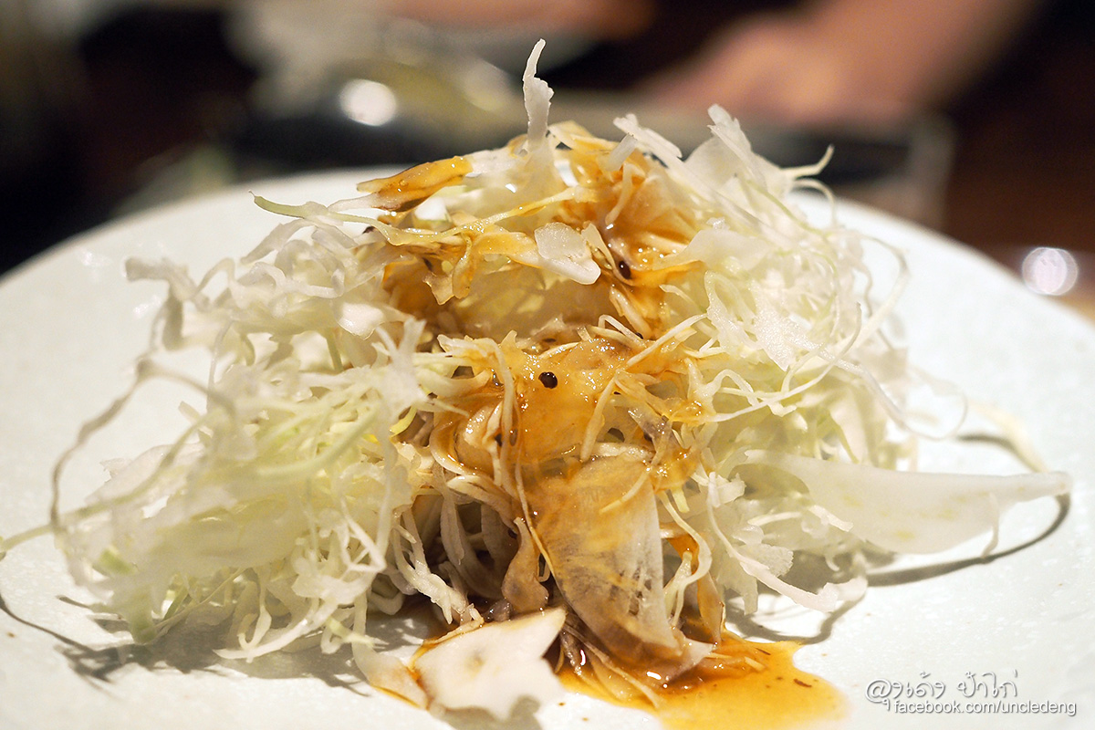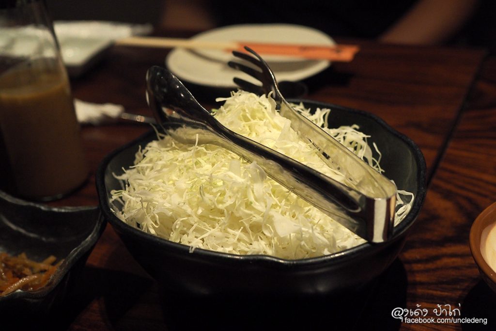 สลัดผักกระหล่ำปลี ทางร้านจะเสิร์ฟผักกระหล่ำปลีซอย มาในชามใบใหญ่ และมีจะจานแบ่งให้มา 1 ชุด