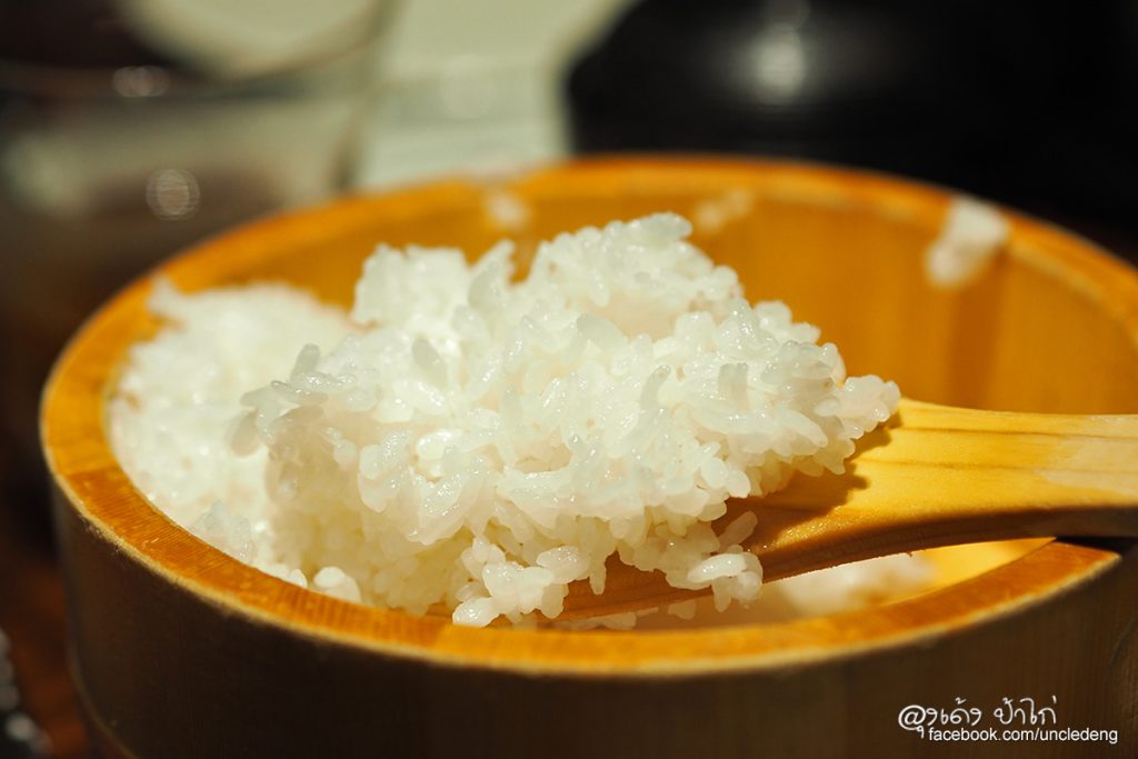 ข้าว... ร้านนี้ใช้ข้าวญี่ปุ่น คุณภาพดีเลิศมาให้บริการลูกค้า เสิร์ฟมาในกระบะไม้ไผ่ ใส่รวมกันมานะครับ ไม่ได้แยกเป็นแต่ละคน ใครกินมาก กินน้อย เลือกตักได้เลย ... ดีที่สุดคือ ข้าวขอเพิ่มได้ และข้าวร้านนี้อร่อยมากๆ (ความคิดเห็นส่วนตัว... เป็นข้าวญี่ปุ่นที่อร่อยที่สุดเท่าที่เคยกินมา)