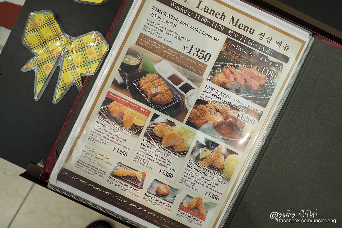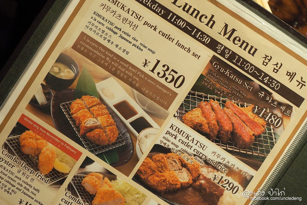 Lunch Menu ลุงเด้งป้าไก่ แนะนำ KIMUKATSU pork cuttle lunch set ราคา 1,350 เยน ชุดนี้คุ้มมาก อาหารจานหลักคือ หมูทอด "มิลฟิลคัทสึ" 1 ชิ้น + ข้าว + ซุป + สลัดผักกระหล่ำปลี ราคานี้คุ้มมากๆ เพราะราคาปกติ เฉพาะหมูทอดชิ้นนี้ก็ 1,980 เยนแล้ว เน้นเลยนะครับ จันทร์ - ศูกร์ 11:00 - 14:30 เท่านั้นนะ