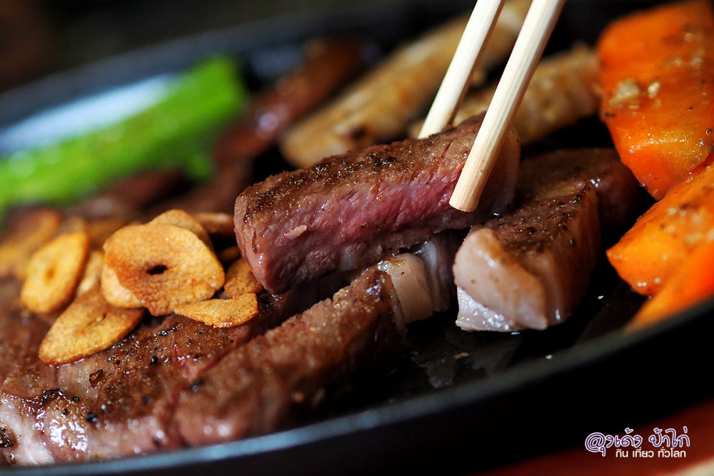 เนื้อสเต็กระดับ Medium เนื้อนุ่ม มันแทรกสวย เคี้ยวอร่อย