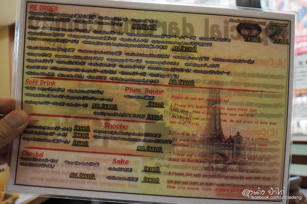 ชื่อร้าน : Kushikatsu Daruma สาขา Dotonbori ( โดทมโบริ )