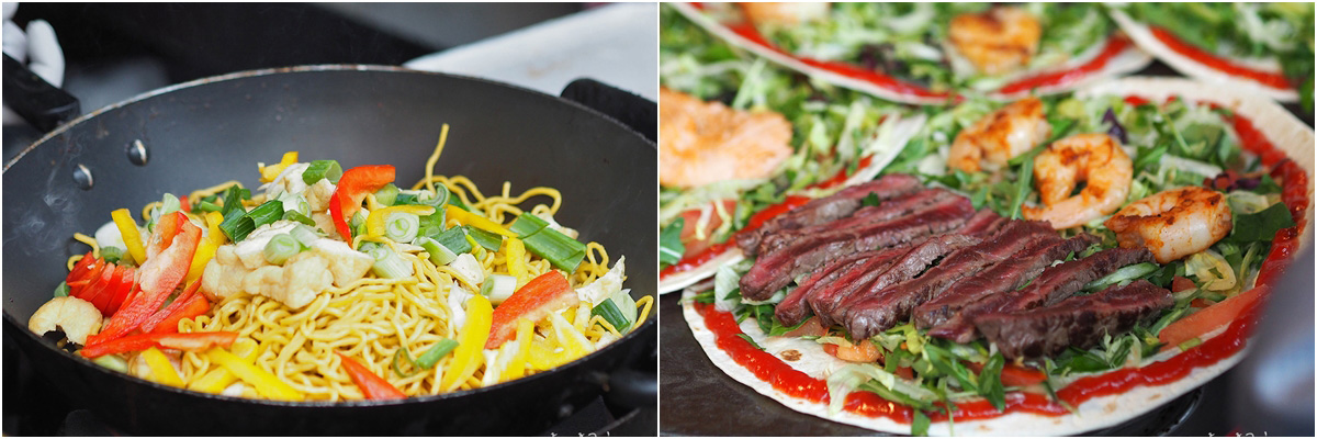 โซนอาหาร จะซื้อใส่กล่อง หรือซื้อแล้วยืนกินหน้าร้านก็ได้ เป็นราคาตลาด ไม่ได้แพงมาก มีร้านสิบร้าน โดยรวมจะเป็นอาหารนานาชาติ มีทั้งของกินเล่น ขนม อาหารคาว หวาน มีครบ ส่วนมากซื้อยืนกินหน้าร้าน