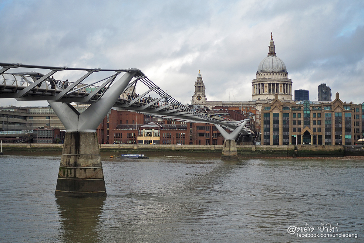 ริมแม่น้ำเทมส์ (River Thames) เราจะมองเห็น Millennium Bridge และ St Paul's Cathedral