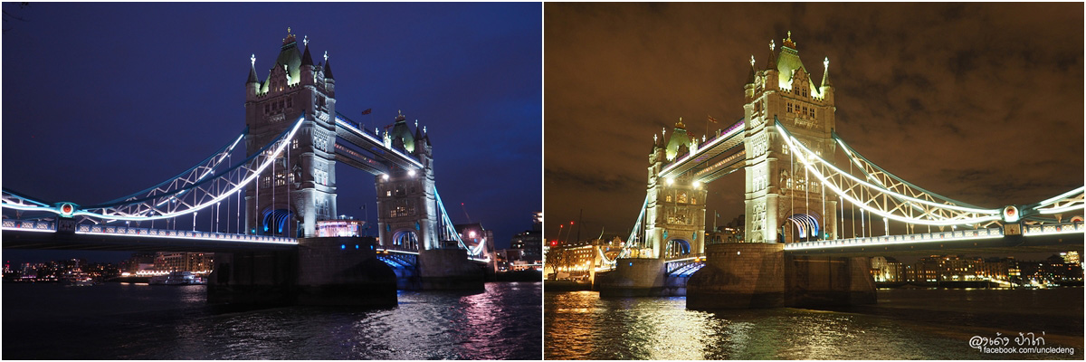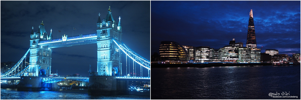 ช่วงค่ำ ลุงเด้งป้าไก่ กลับมาที่ Tower Bridge อีกรอบ เพราะเมื่อเช้าฝนตก ฟ้าเน่า แวะมาช่วงกลางคืน ว๊าว... เปิดไฟ สวยมาก