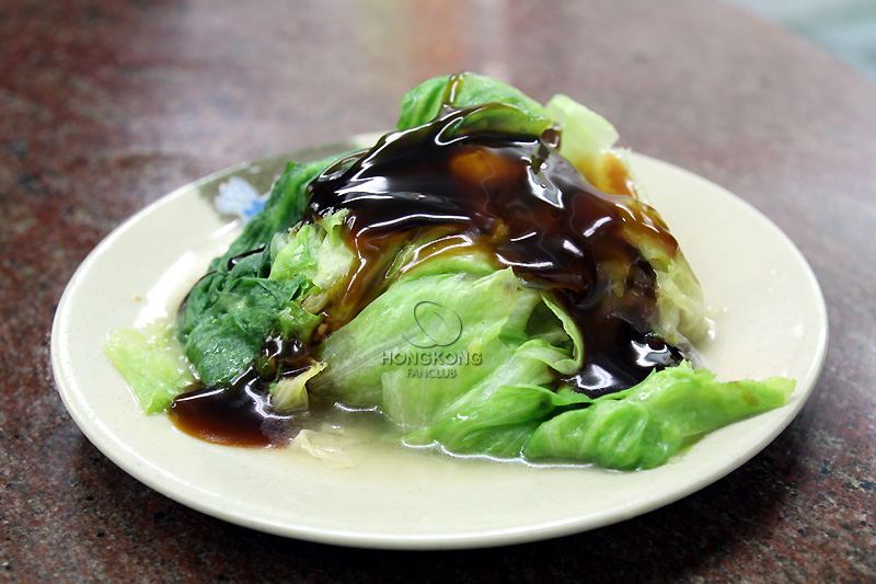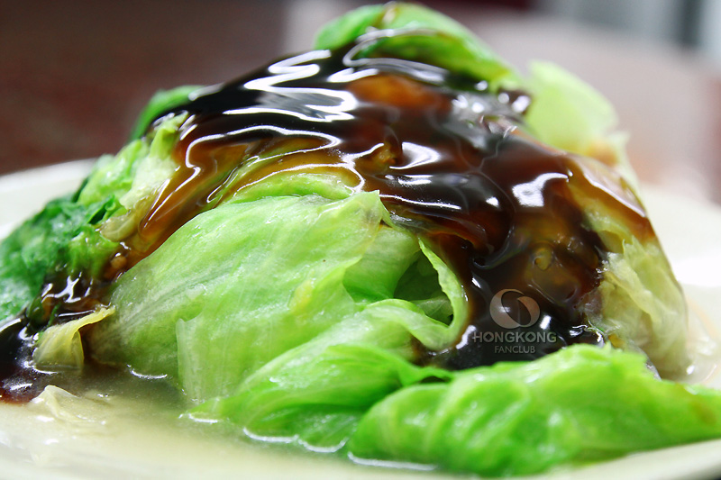 ผักกาดแก้ว เวลาลวก จะ เขียวเหมือนหยก คนจีนชอบทานกันในวันมงคล จานนี้ ราคา HK$ 14