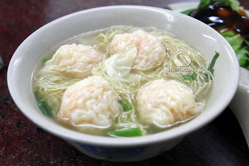 เกี๊ยวกุ้งฮ่องกง : หวั่นทั้นหมิ่น (หวั่นทั้น = เก่ยว / หมิ่น = บะหมี่) สนนราคาชามนี้ HK$22