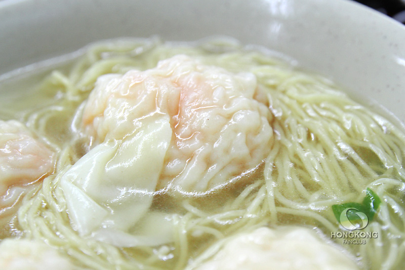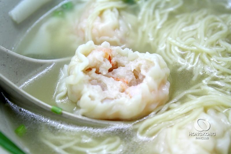 (ปกติแล้ว เกี๊ยวฮ่องกง จะวางอยู่ก้นชาม แล้วมีบะหมี่วางด้านบน)