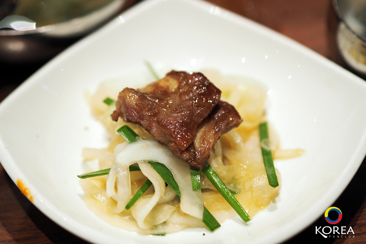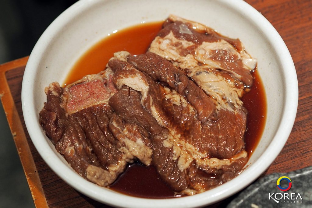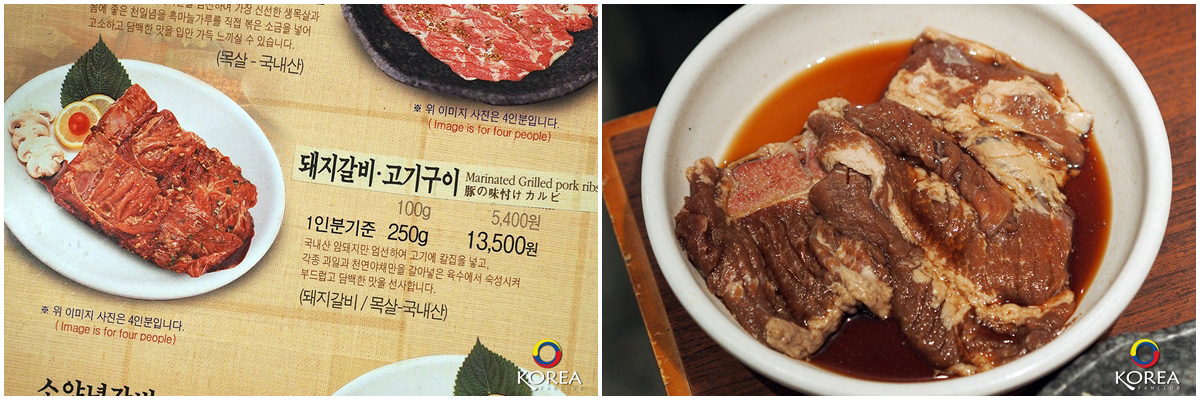 เมนูที่ ต้องสั่ง 2 ชุดขึ้นไป : Marinated Grilled Pork Ribs (เนื้อซี่โครงหมูหมัก) น้ำหนัก 250 กรัม ราคา 13,500 วอน