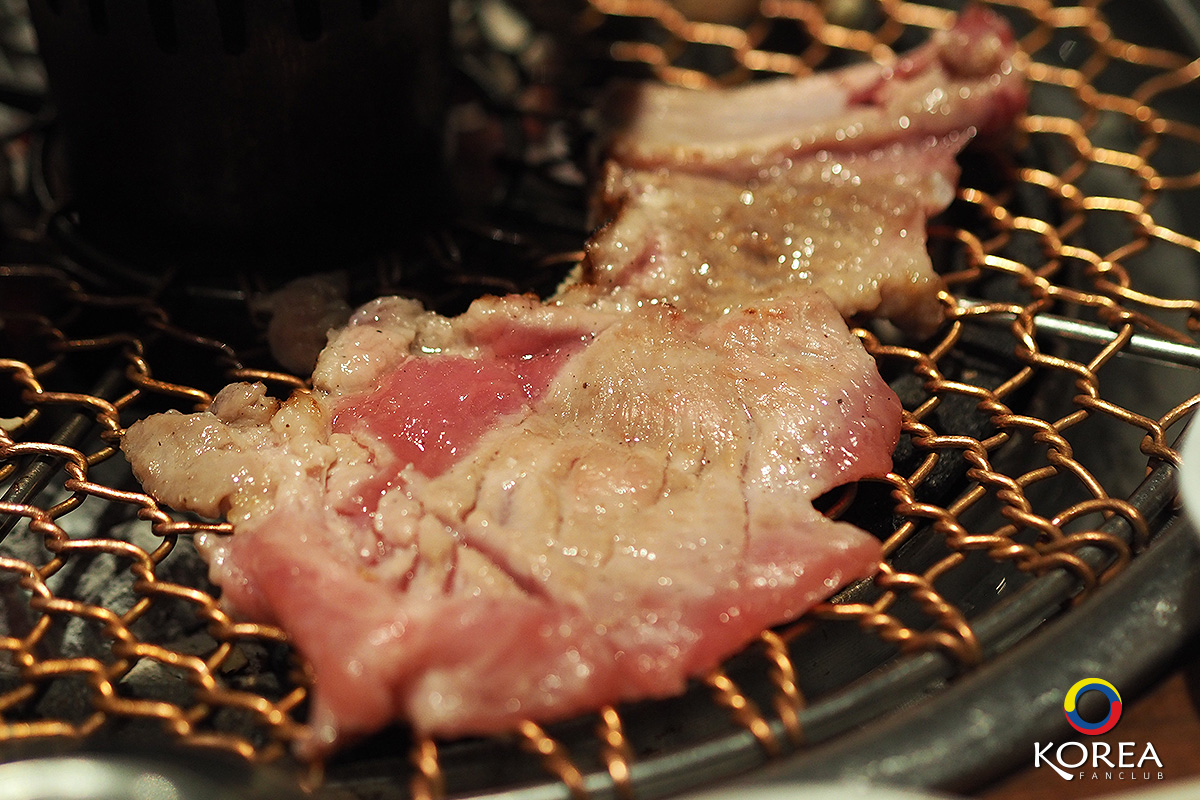 เราไม่ต้องย่างเอง... พนักงานจะมาย่างให้เราที่โต๊ะ ย่างสุก 50% ก็ตัดเป็นคำๆ แล้วย่างต่อให้จนสุก