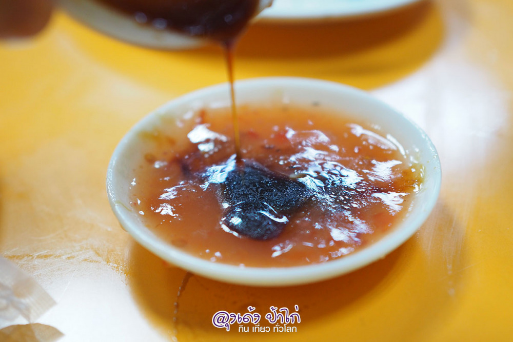 น้ำจิ้ม มี 2 แบบ - ซีอิ้วดำแบบเค็ม และ ซอสพริก เปรี้ยว หวาน แนะนำ เอาทั้ง 2 ซอส มารวมกัน