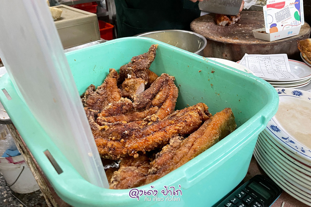 ถังใส่หมูกรอบ หนึ่งในเมนูขายดีของทางร้าน