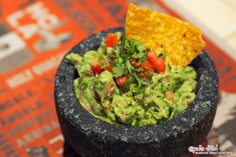 อาหารจานแรกที่แนะนำ : Guacamole En Molcajete (กัวคาโมเล่ปรุงสดใหม่เสิร์ฟพร้อมแป้งข้าวโพดตอติญ่ากรอบ) ราคา 250 บาท