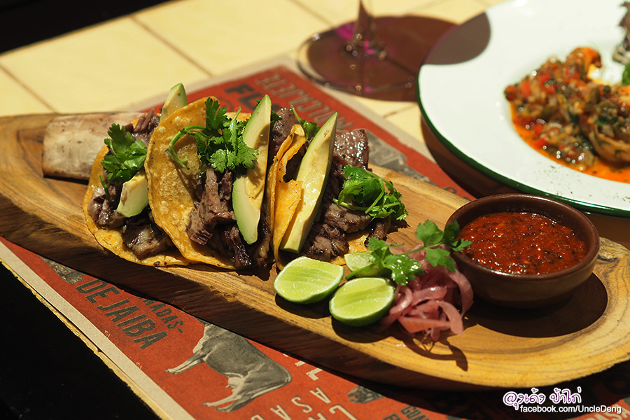Tacos Short Ribs ราคา 300 บาท ชุดนี้เด็ดสุดที่เนื้อซี่โครงวัวชั้นดี ผ่านการปรุงด้วยวิธีซูวี "Sous Vide" เนื้อซี่โครงนุ่มฉ่ำ แบบละลายในปาก เรียกได้ว่าเป็นเมนูประทับใจที่สุดของมื้อนี้