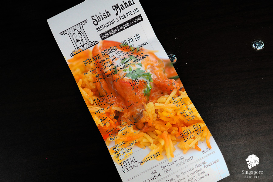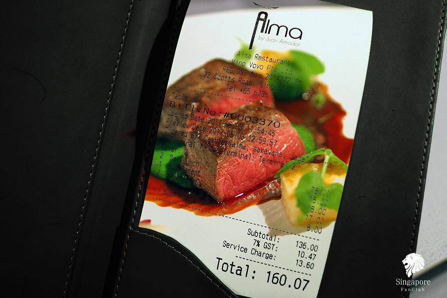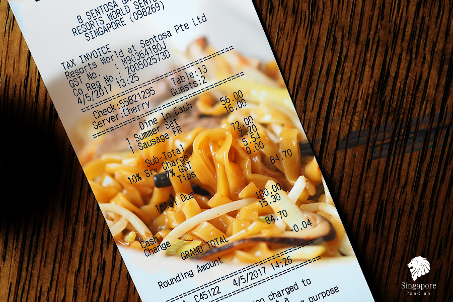 มื้อนี้จ่ายไป รวมแล้วจ่ายไปเพียง SG$ 84.70 เหรียญ (คิดเป็นเงินไทย ประมาณ 2,100 บาท) ส่วนตัวคิดว่าไม่แพงกับความประทับใจที่ได้รับ