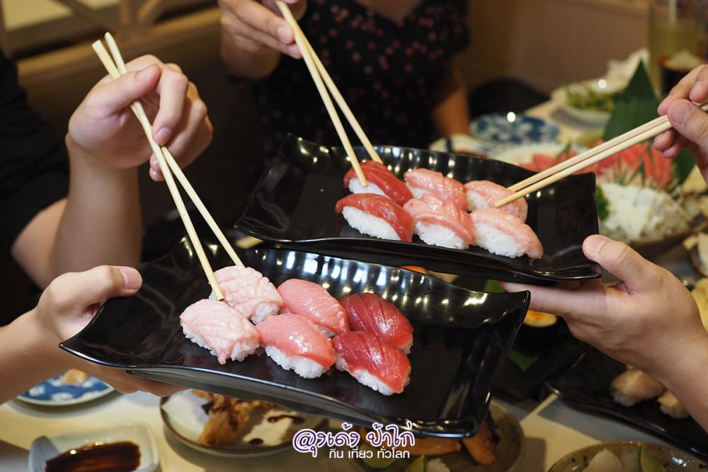 ปลาทูน่าครีบเหลือง ไข่ปลาแซลม่อน ซูชิปลาโฮคาดะ เป็นต้น