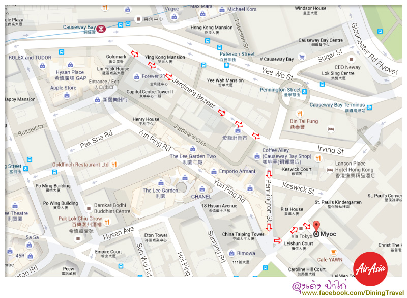 การเดินทาง : Causeway Bay ทางออก F เดินเท้าไม่เกิน 10 นาที