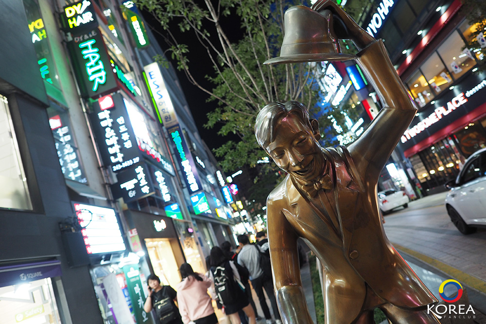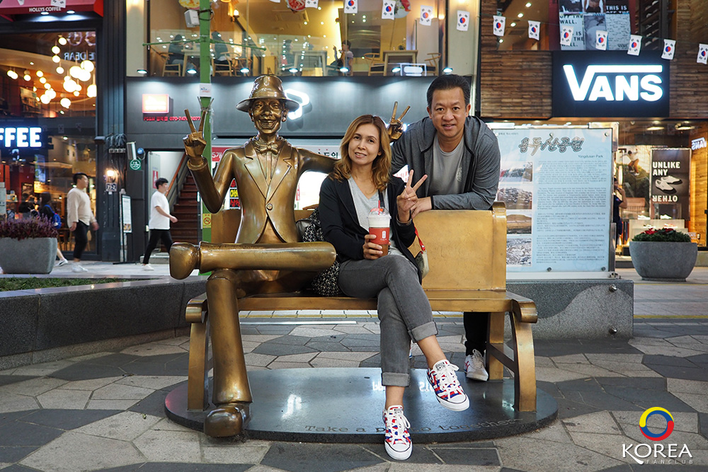 รูปหล่อทองเหลือง เสมือนเป็นหนึ่งในสัญลักษณ์ของ เทศกาลภาพยนตร์ปูซาน ที่ยืนต้อนรับนักท่องเที่ยวที่มาเยือนเมืองปูซาน