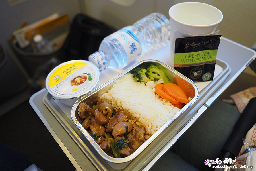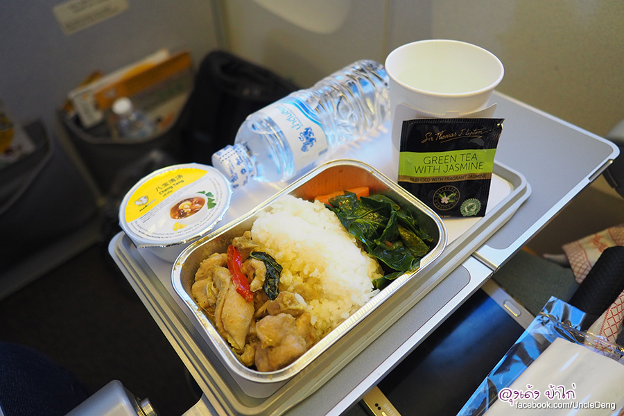 หลังจากที่เครื่องบินไต่ระดับความสูงที่ระดับความ สูง 35,000 ฟุต ในเวลาไม่นานพนักงานต้อนรับก็เตรียมจัดอาหารพร้อมเสิร์ฟ รสชาติ และ หน้าตาอาหารจัดว่าดูดีเลยนะ
