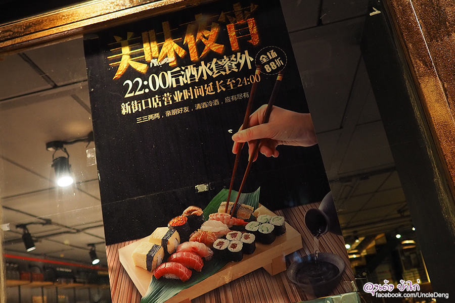 มื้อแรกใน เมืองนานกิง ประเดิมร้านอาหารญี่ปุ่น ปลาดิบรวม ชุดนี้ จ่ายไป 104 หยวน (520 บาท) เพราะมากินช่วง 22:00-24:00 ลดไปอีก 12% ถูกเวอร์