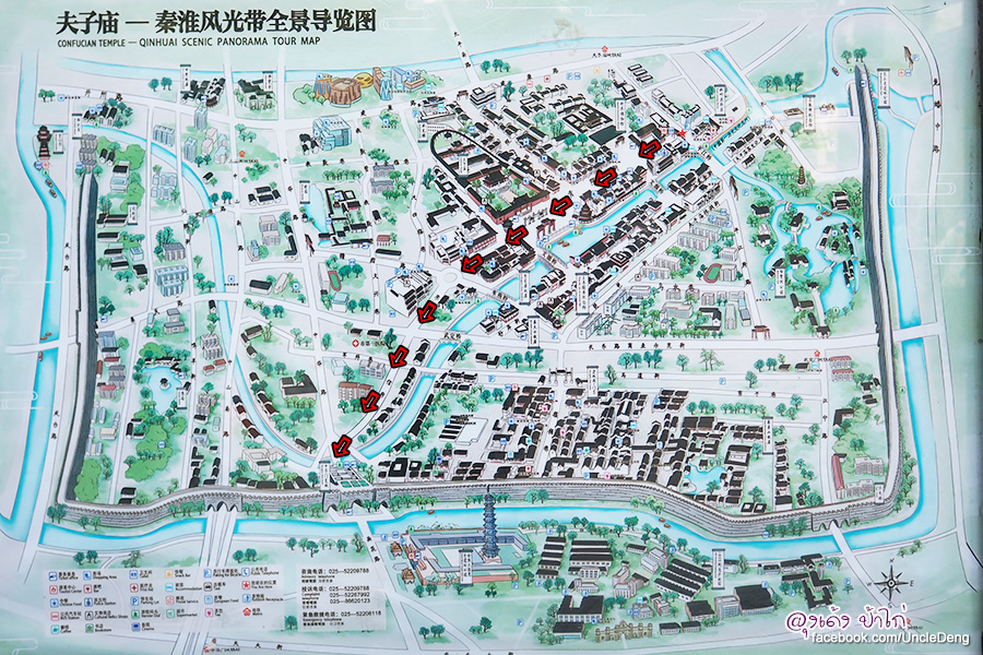 กลับมายังจุดเริ่มต้นคือ ตลาดฟู่จื่อเมี่ยว Fuzimiao Market ในบริเวณนี้เป็นแหล่งรวมร้านอาหาร ร้านขนม ของที่ระลึก วัดขงจื้อ (Confucius Temple ,夫子廟) / แม่น้ำชิงไห่ (Qin Huai River) / ล่องเรือแม่น้ำชิงไห่ Qinhuai River Cruise ทุกสิ่งอย่างอยู่ที่นี่ทั้งหมด ลุงเด้งป้าไก่จะอยู่บริเวณนี้ถึงค่ำเลย